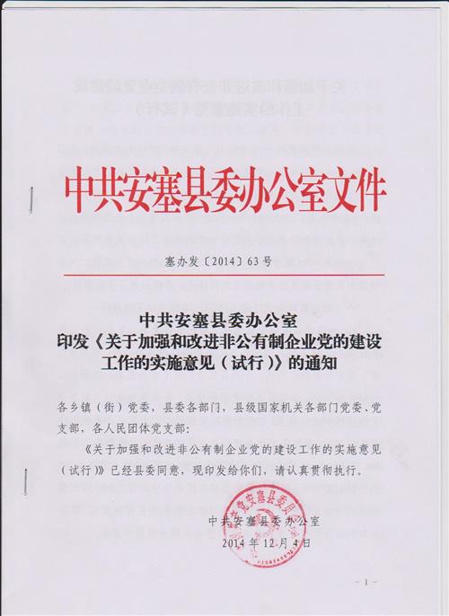 为深入贯彻党的十八大和十八届三中、四中全会精神,全面加强全县非公有制企业党建工作,根据《中共中央办公厅印发<关于加强和改进非公有制企业党的建设工作的意见(试行)>的通知》(中办发〔2012〕11号)和《中共延安市委办公室印发<关于进一步加强和改进非公有制企业党的建设工作的实施意见(试行)>的通知》(延市办发〔2014〕16号),结合我县实际,现就加强和改进全县非公有制企业党的建设工作提出如下实施意见。